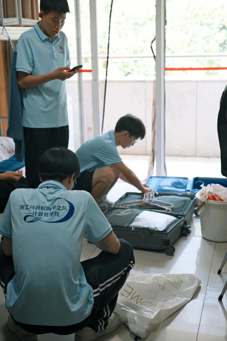 抵达湖南三一工业职业技术学院后,团队成员有序携带材料前往宿舍楼,按预分配的宿舍号完成登记,并投入宿舍整理。