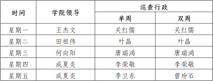 学院领导课堂巡查安排表