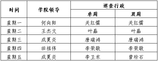 学院领导课堂巡查安排表
