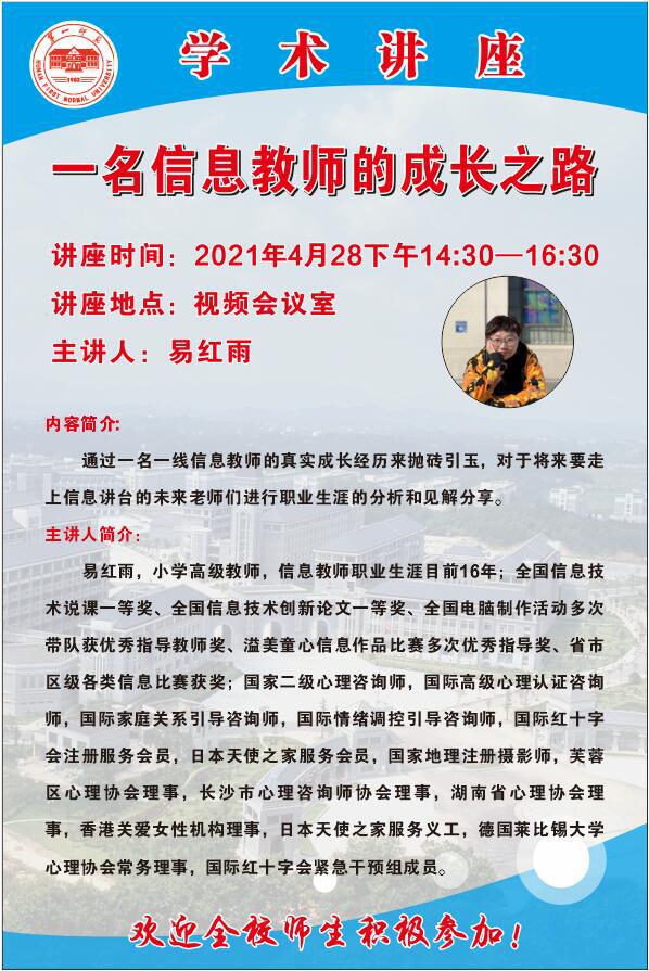 【学术讲座预告】 一名信息教师的成长之路