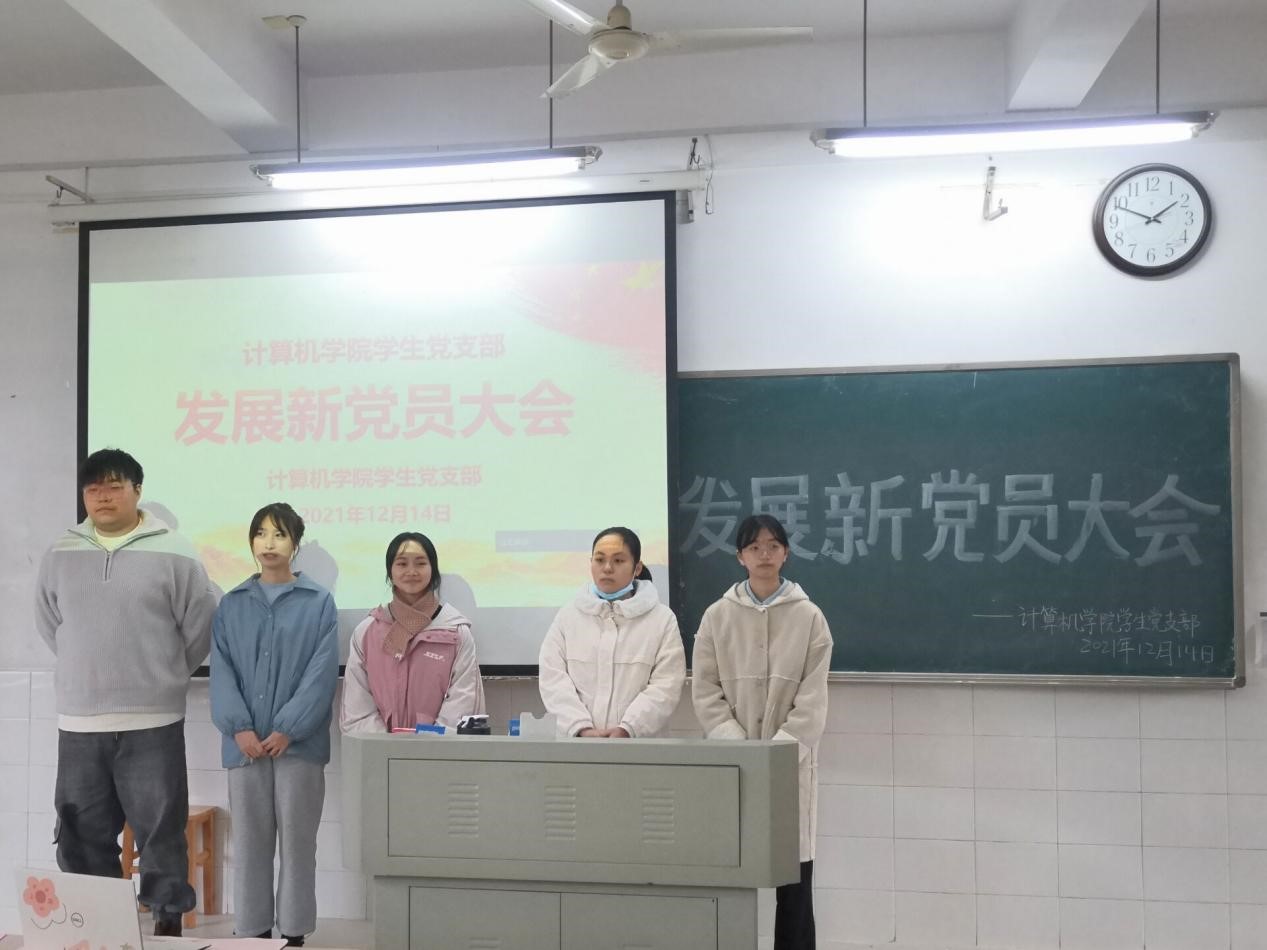 2021年12月14日,beat365官网于玉衡北309、玉衡北310召开发展新党员大会,并于腾讯会议同步进行线上会议。参会人员有学院党委副书记陈奕、党支部书记关红儒以及学生党员、发展对象。会议分别由罗林、苏琴主持。