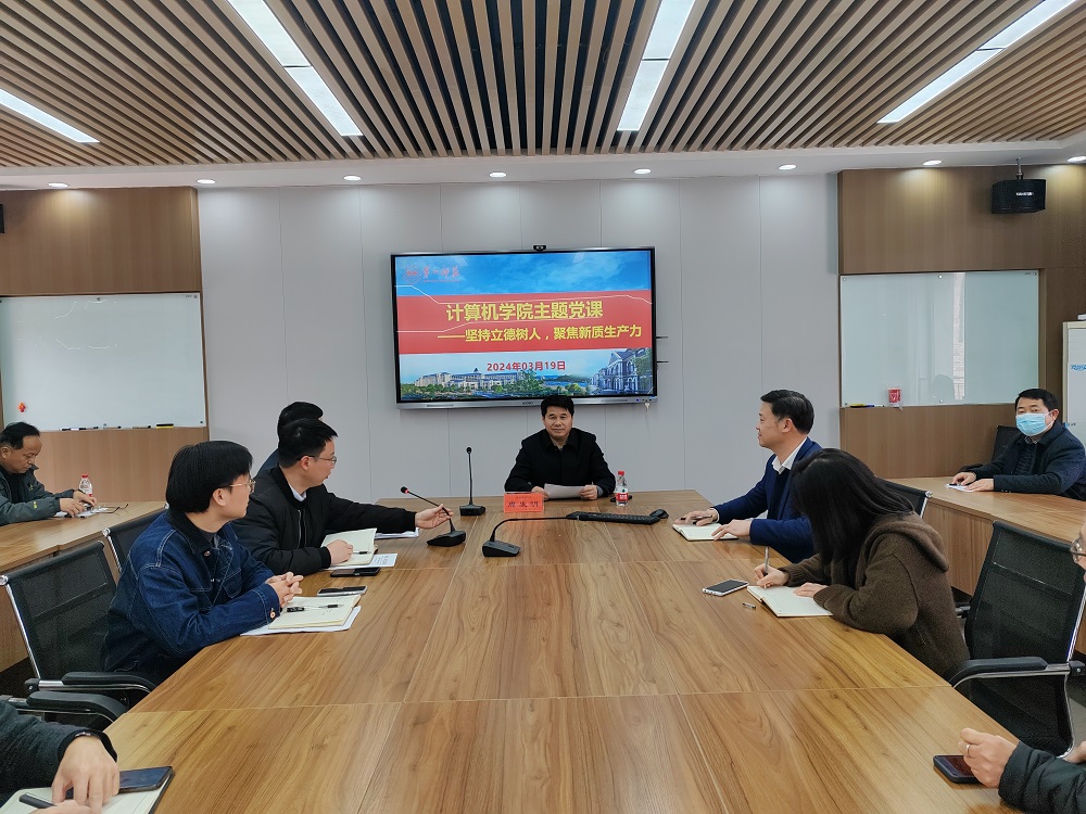 3月19日下午,校党委委员、副校长周发明在玉衡楼406会议室讲授主题党课,beat365官方网站全体党员教师参加了学习,院党委书记刘立勇主持。