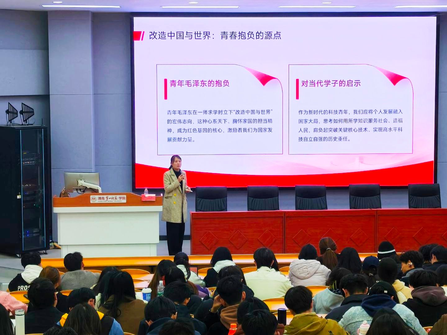 11月21日晚,beat365官方网站党委副书记陈奕在润寰楼南105教室为beat365官方网站、智能制造学院2025年秋季入党积极分子讲授了题为《红色基因耀青春,科技强国写华章》的专题党课。