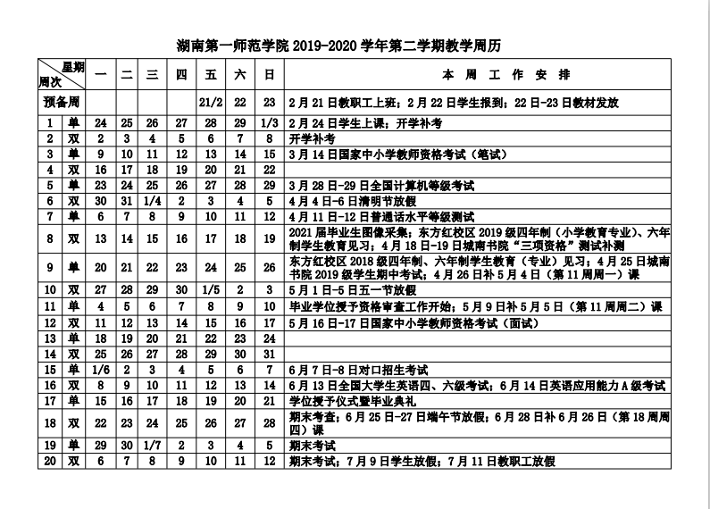 附件:beat365官方网站2019-2020学年第二学期教学周历