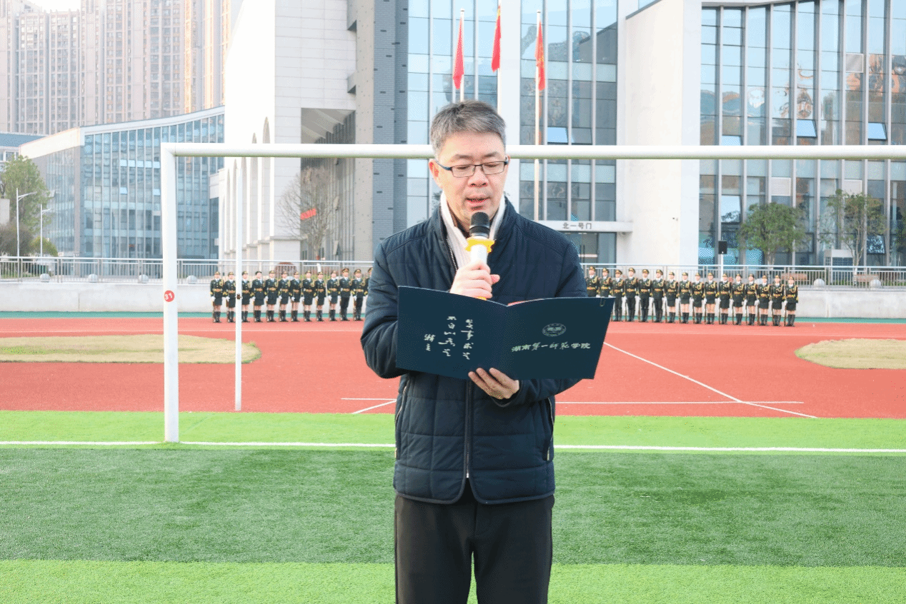 7时整,国旗护卫队迈着铿锵步伐护卫五星红旗入场。伴随着雄壮的《义勇军进行曲》,全体师生肃立齐唱国歌,向冉冉升起的国旗行注目礼。学院党委副书记(主持工作)刘大维在国旗下讲话中强调,要深刻领会习近平总书记视察beat365官网重要讲话精神,倡导青年学子将学习科学文化知识与树立远大理想相结合,用好红色教育资源传承革命精神,立足专业优势投身社会实践,切实将“红色基因”与“数字使命”有机融合,为教育强国和科技报国贡献智慧力量。