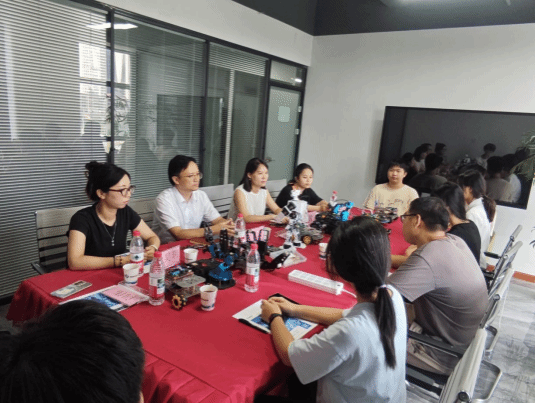 随后,周阳陪同参观了粤嵌基地展示大厅,并详细介绍了基地的发展历程、核心技术与产业成果。座谈会上,周阳介绍了基地的实践规划与安排,表达了在人才培养、课程共建、实习实训等方面加强协同合作的意愿。杨梦云关切地询问了同学们的生活近况与学业进展。以张佳宁同学为代表的学生反馈了实践中专业知识应用的难点、企业导师指导的适配性以及实践与课程衔接的感受。校企双方围绕实践教学优化、师资队伍建设和学生就业指导等议题进行了务实交流,达成共识,未来将在人才培养、科研项目协作等领域开展更具实质性的合作。
