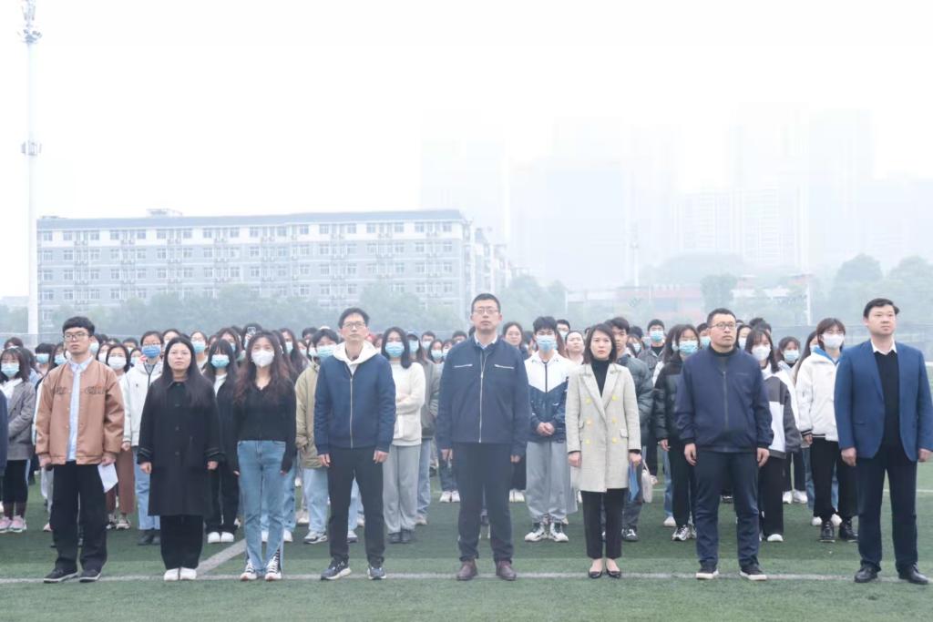 4月18日,我院在东方红校区田径场隆重举行升旗仪式。学院行政班子成员、全体辅导员老师及千余名所有在校学生参加本次升旗仪式。
