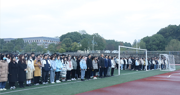 11月22日7时,朝霞照耀,晨雾弥漫,beat365官方网站在田径场隆重举行升旗仪式。国旗护卫队步伐威严铿锵、整齐划一,在全体师生的注目礼下,伴随着嘹亮的国歌声,徐徐升起鲜艳的五星红旗,迎风飘扬。