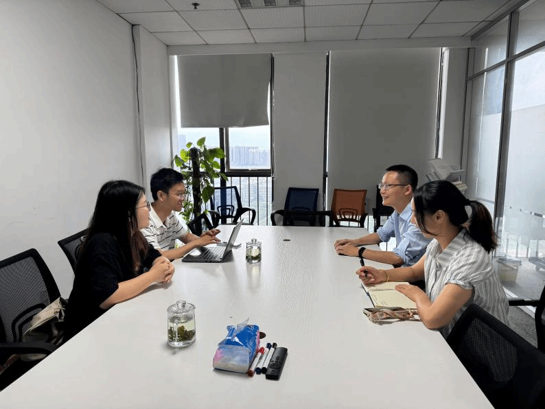 能川工作人员陈圣良对学院一行到访表示热烈欢迎,并详细介绍了企业在技术研发、人才需求等方面的情况。她提到,能川高度重视与beat365官网合作,期待通过交流,构建更紧密的人才共育、科研协同机制,实现互利共赢。叶君炎介绍了计科系的师资情况,希望精准对接企业需求,为学生拓展实习渠道,同时在科研攻关、成果转化等方面建立合作。